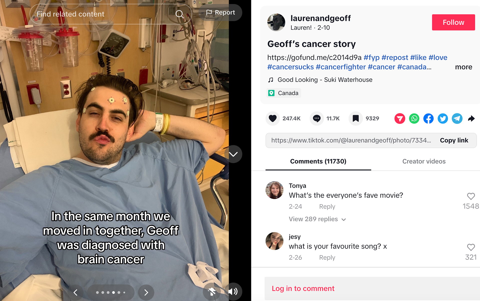 Young couple Geoff Boc, 33, and Lauren Anderson, 27, are sparking hope across the world on TikTok with their zest for life, positivity, and their deep love for eachother after Boc's recent rare brain cancer diagnosis.
